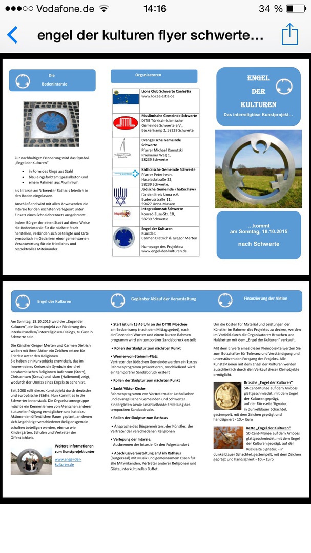 "Engel der Kulturen" 18.10.2015 Pazar günü Schwerte'ye konuk oluyor!