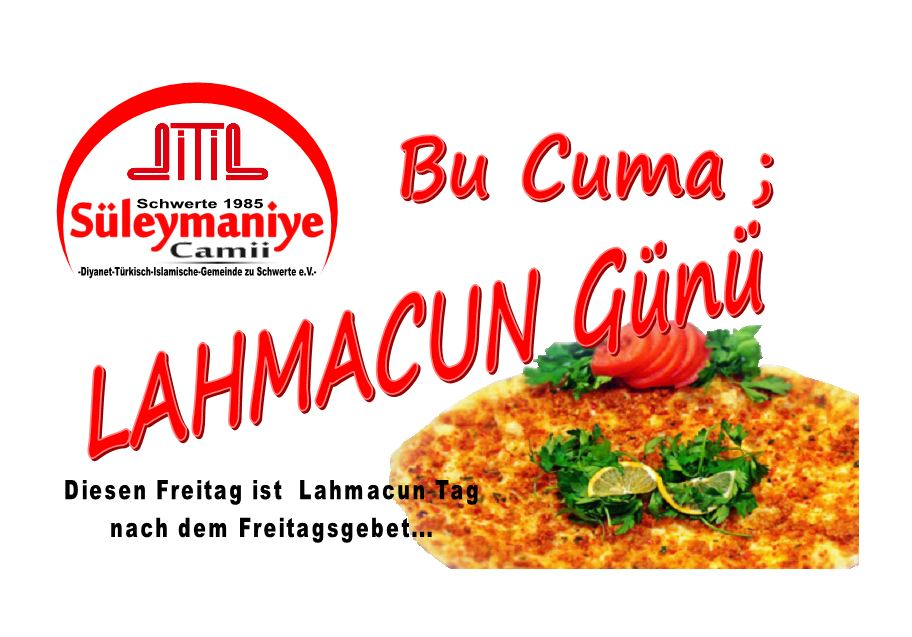 DİTİB Süleymaniye Kadınlar Kolu organizesiyle 15.01.2016 tarihinde Cuma namazından sonra taze lahmacun satışı olacaktır.