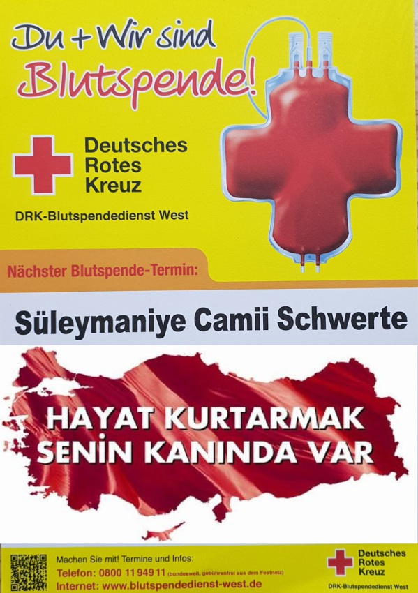 Bugün saat 13:00 ile 17:30 arası camimizin önünde Kan Bağışı kampanyası yapılacaktır. Gerekli ilgiyi göstereceğinizi umuyor, sizi kan bağışı kampanyasına katılmaya davet ediyoruz. Bu faliyet camimiz