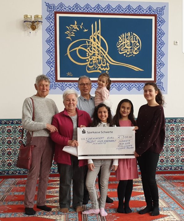 Ditib Schwerte Süleymaniye Moschee unterschtützte das Projekt gegen Kinderarmut in Schwerte mit 500 Euro, von dem Teil des Erlöses 23 Nisan Internationales Kinderfest