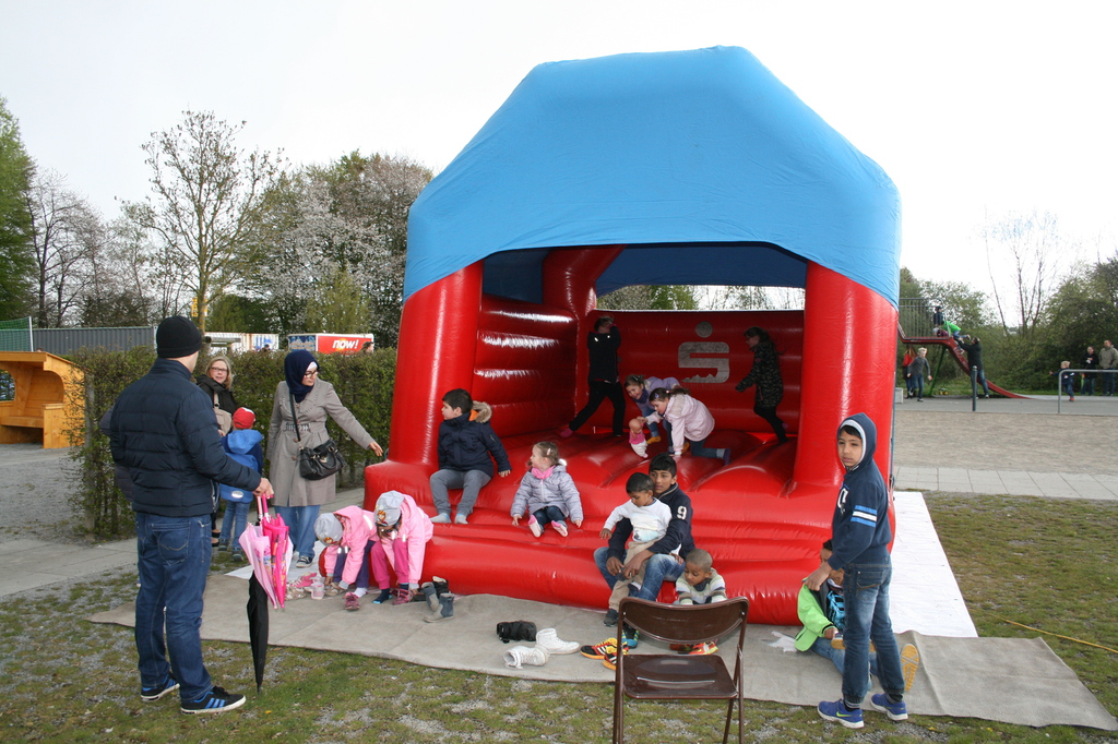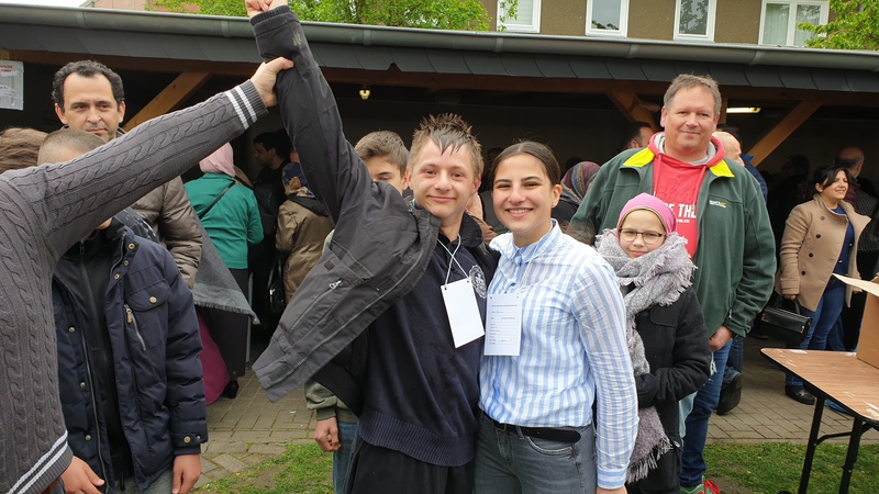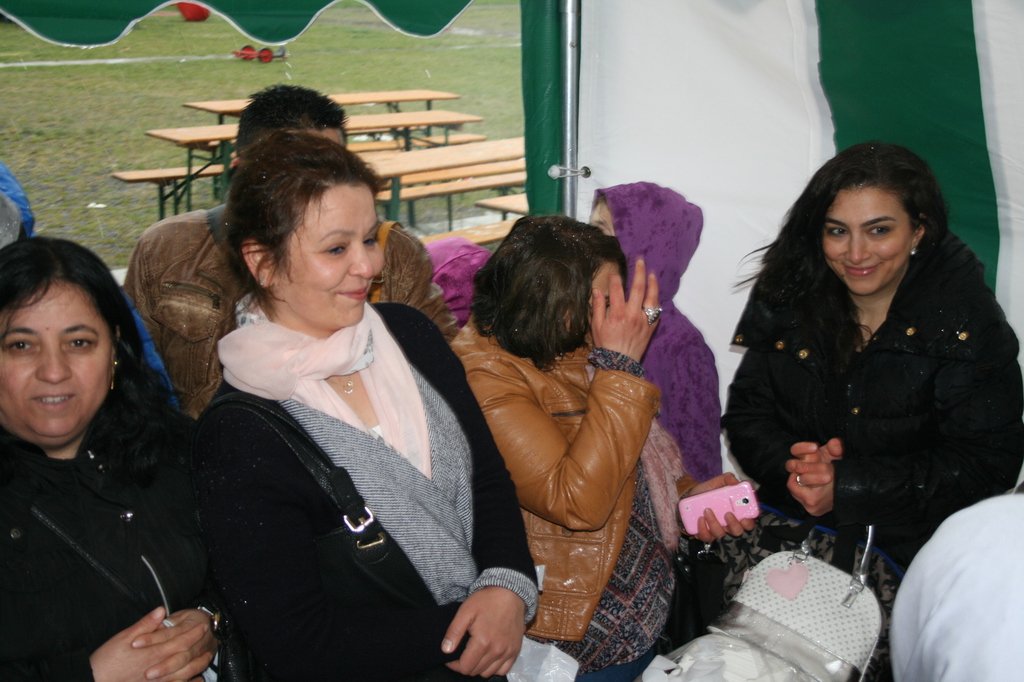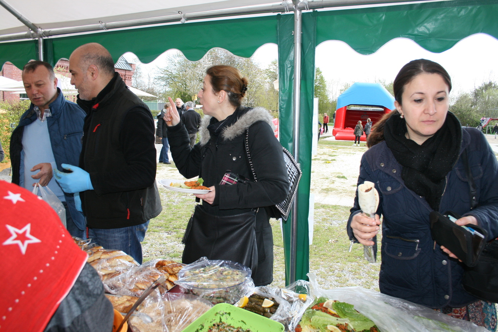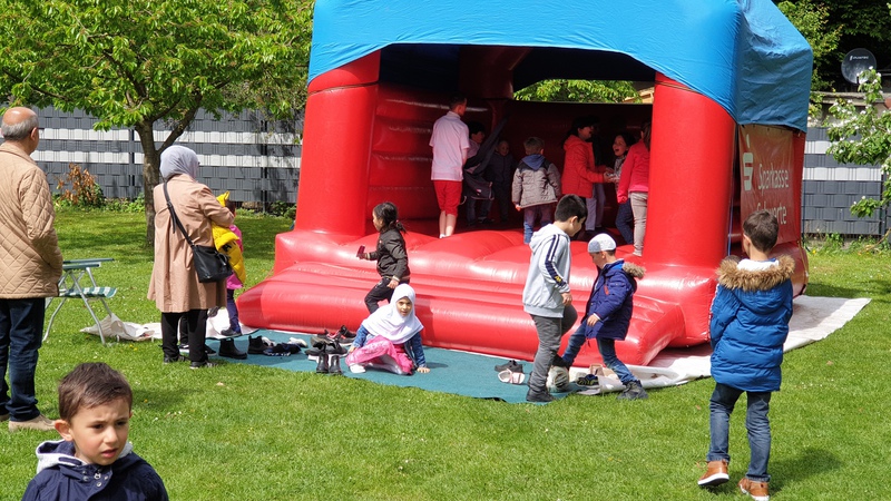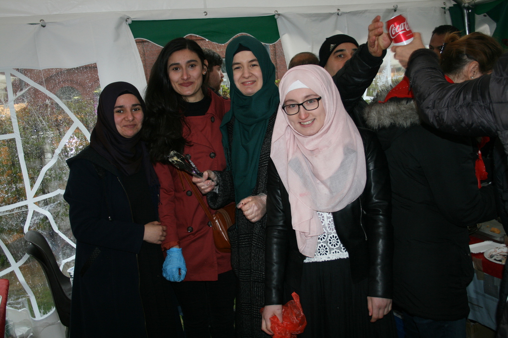 am 28.04.2019. Auf dem Foto sind von links : Von der Sozialdienst Katholische Frauen Frau Dellmann und Frau Wenniges, Ditib Moschee Vorsitzender Herr Kalayci mit Zeynep, Arzu, Bennu und Elif. Es
