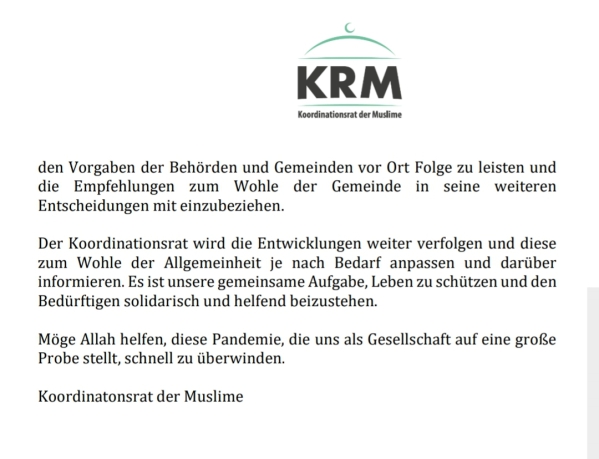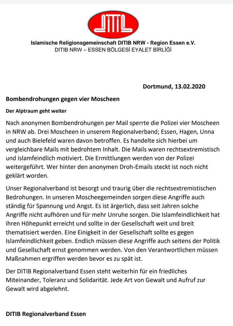 Bütün ilgililerden önemle ricamız, Müslüman cemiyetlere ve özellikle DİTİB cemiyetlerine karşı bu toplumsal dışlamanın durdurulması, ferdi buluşma ve görüşme yolunu tercih ederek bizzat yetkililerle görüşmeleridir.