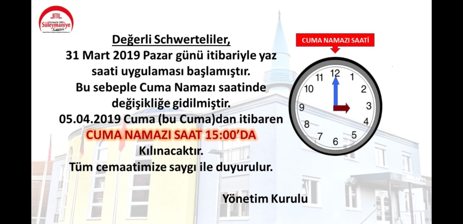 Değerli Schwerteli Cemaatimiz, 30.03.2019