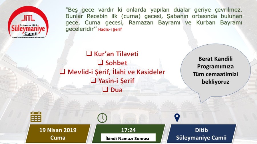 Değerli Schwerteli Cemaatimiz, 19.04.2019