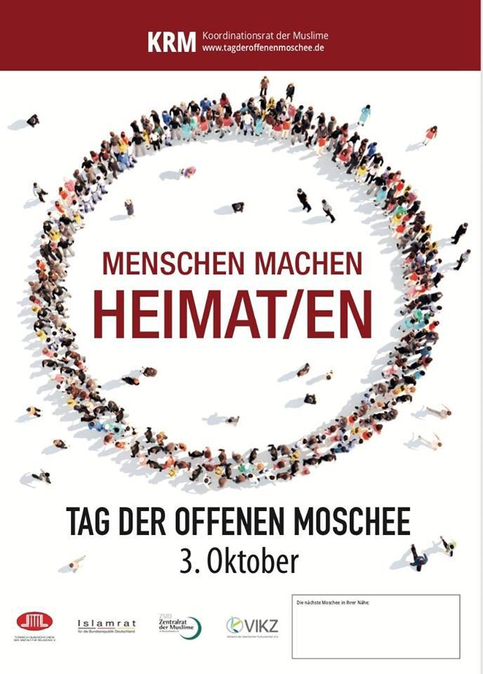 Unter dem Motto „Menschen machen Heimat/en“ werden die Moscheeführungen jeweils um 12.00 Uhr sowie 14.00 Uhr stattfinden.